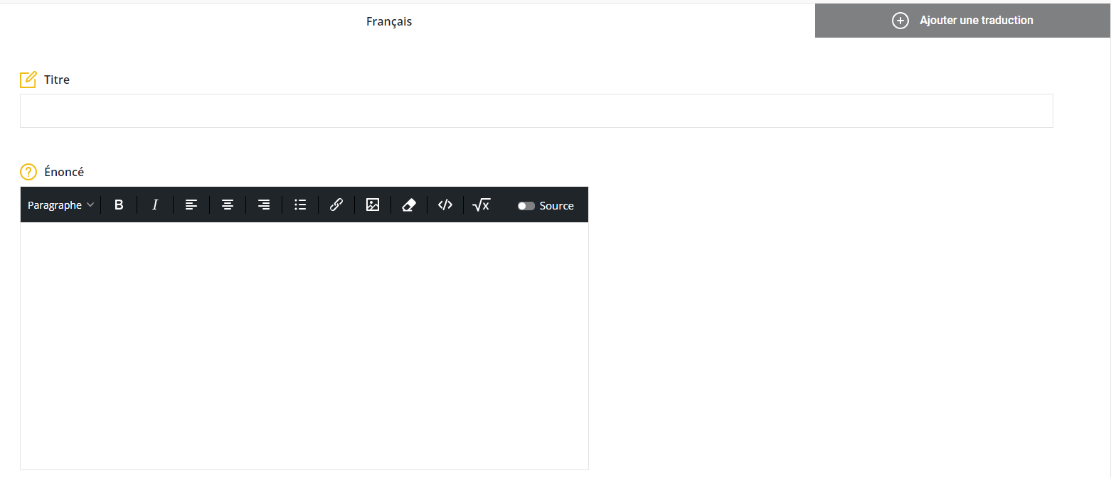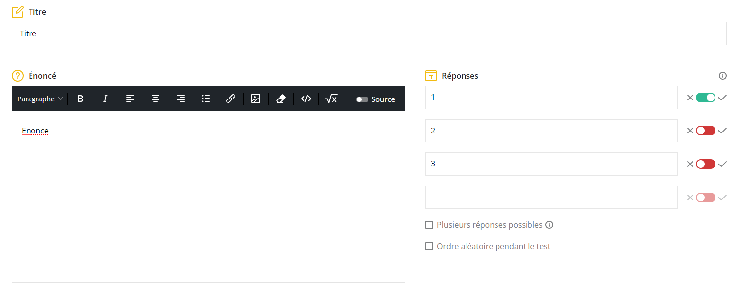 Saisissez le Titre et écrivez la question dans la Case d'énoncé ci-dessous.