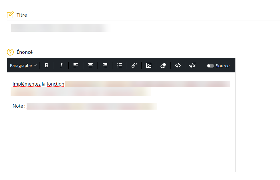 - Saisissez le Titre (le candidat ne voit pas le titre).