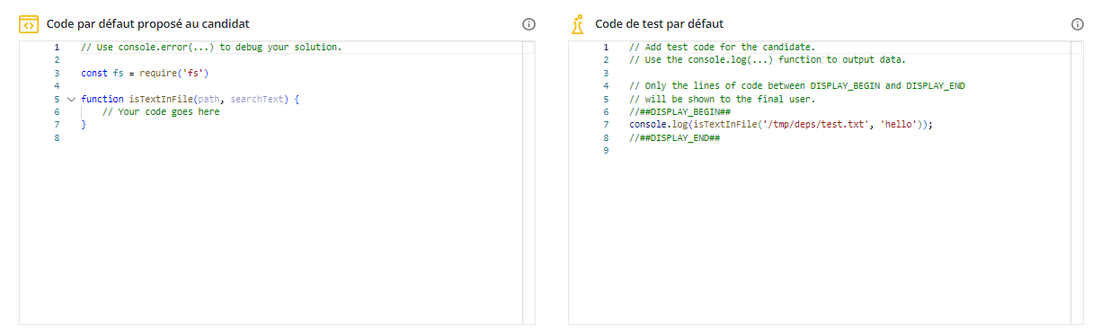 Les questions basées sur des fonctions vous permettent de créer des exercices indépendants du langage où le candidat peut répondre dans le langage de programmation avec lequel il est le plus à l'aise.