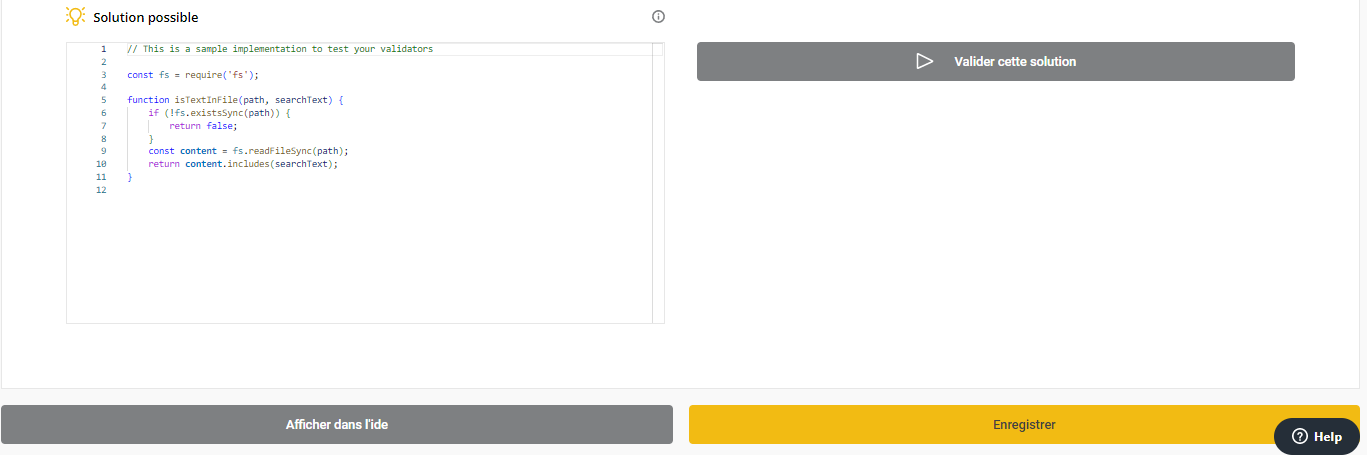 Une fois votre solution possible rédigée, il vous suffit de cliquer sur le bouton Valider la solution pour voir les résultats.