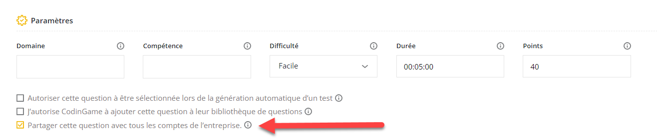 2. Ensuite, depuis votre compte, ouvrez la question que vous souhaitez partager. Dans la section des paramètres, vous verrez une case à cocher à cocher :