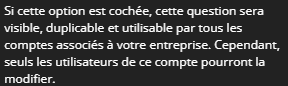 Les comptes destinataires pourront alors la voir dans leur liste de Questions personnalisées.