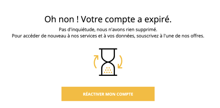 Si vous voyez cet écran, c'est que votre paiement a échoué trois fois (carte de crédit expirée, problème avec votre compte bancaire, etc.) et nous avons fermé l'accès à votre compte.