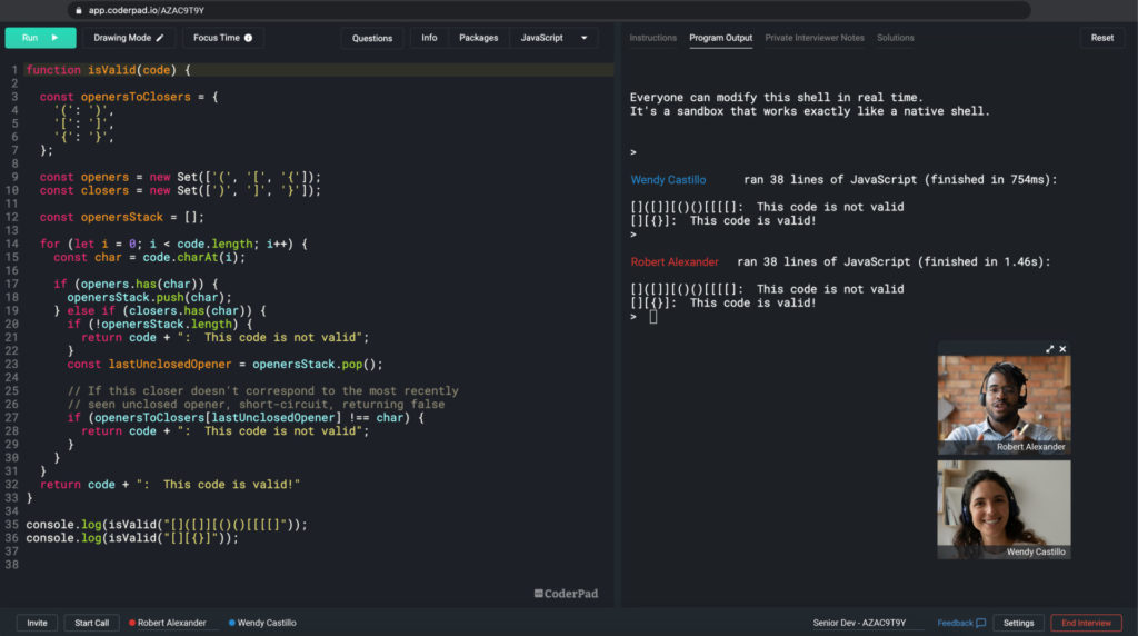 In contrast to take-home projects, CoderPad’s live pads take the evaluation of a candidate one step further. It enables you to understand how your candidate thinks through problems, why they chose a particular solution, and how they iterate on their solution if the problem changes. This approach is so much more than just language proficiency: it’s telling you how this person targets problem solving and how they’ll work within your team. Plus, it’s beneficial to code together. You get face-to-face contact with the candidate before taking the (much more expensive and time consuming) effort of setting up the “onsite” interview.