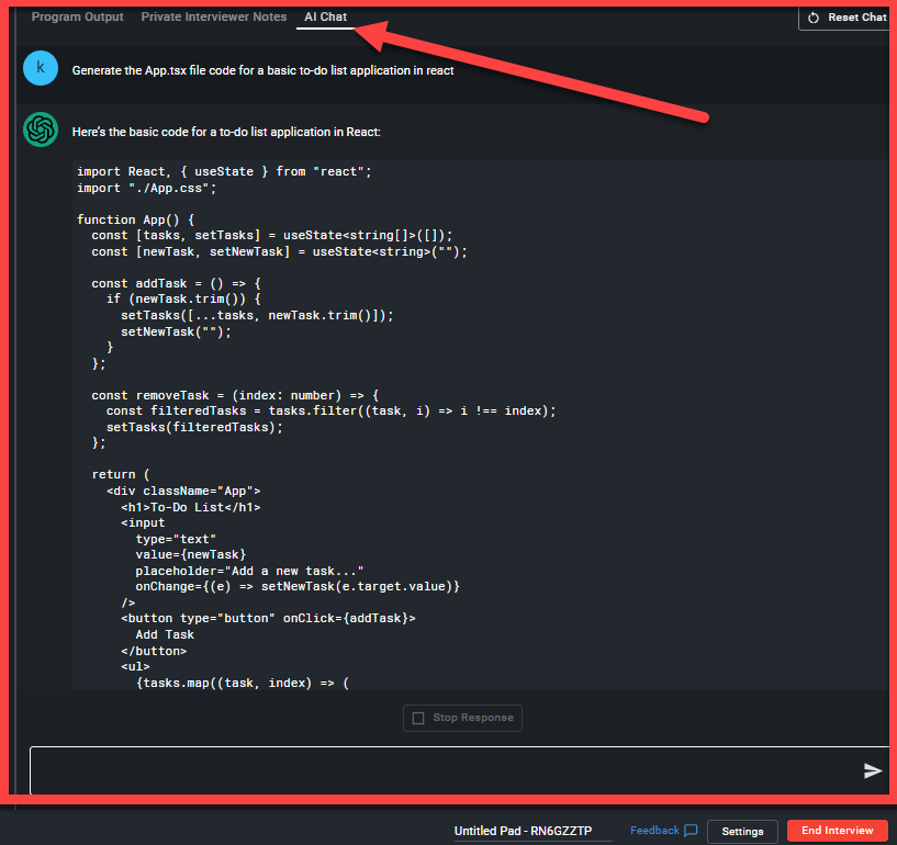 Here’s what authorizing ChatGPT looks like for your hiring managers conducting a technical interview on CoderPad:
