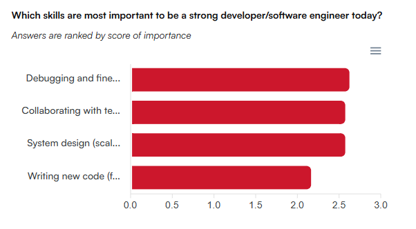 - Developers are still critical—maybe more than ever. Those who can analyze AI-generated solutions, assess tradeoffs, and communicate effectively will be indispensable.