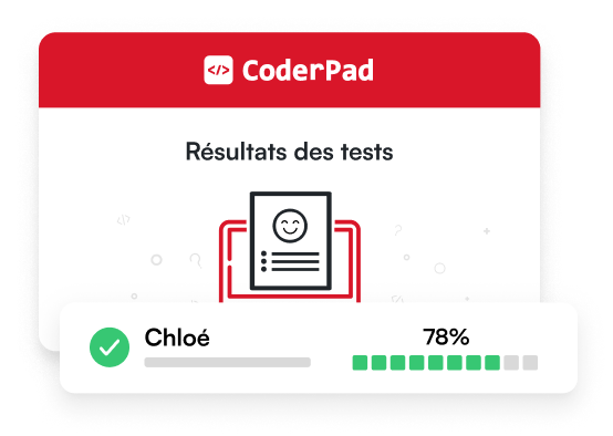 96 % des candidats qui commencent un test CoderPad Screen le terminent. Des tests techniques pertinents et réalistes pour motiver vos candidats.