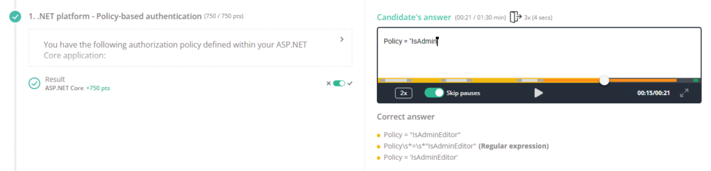 Code playback is now available for text questions. Like with coding exercises, playback lets you see how the candidate wrote the answer to give you some insight into their train of thought and problem solving. This will be particularly handy when using follow-up questions to understand how candidates got their coding exercise responses.