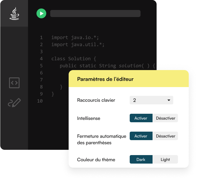 Facile à configurer, la solution est rapidement prise en main par les candidats. Cet environnement de développement complet propose une expérience très réaliste.