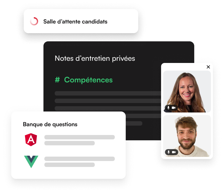 Menez des entretiens plus efficaces grâce aux fonctionnalités de prise de notes, au code playback et à notre banque de questions.