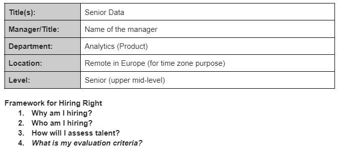 For example, we have templates we use for each job we post at CoderPad. Here’s a snippet of one that was filled out for a data analyst.