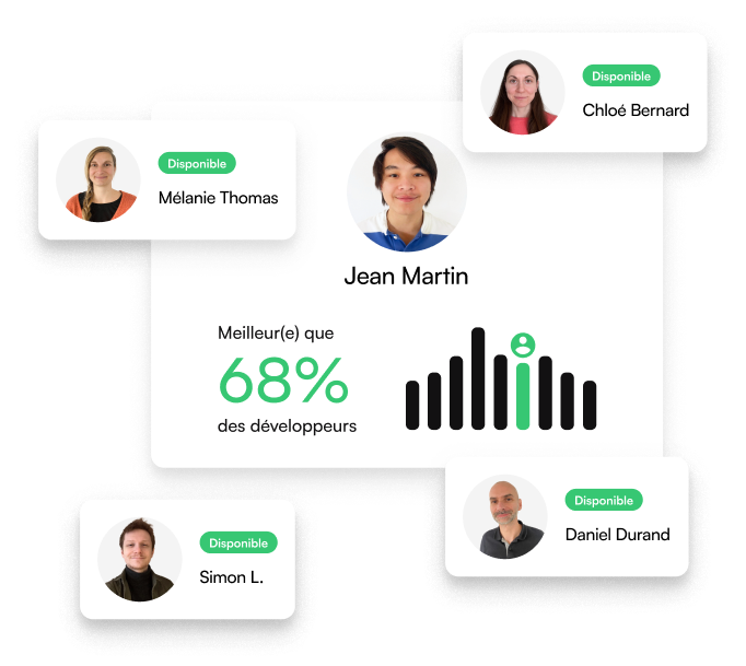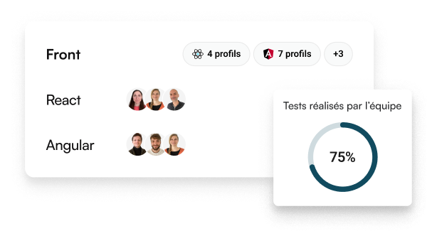 Formez votre équipe de rêve - Évaluez les compétences de vos développeurs dans plus de 70 langages et technologies, et accompagnez leur évolution grâce à des tests techniques gamifiés et réalistes.