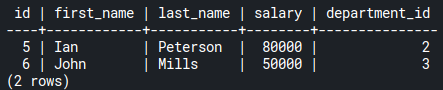 WHERE salary > 35000;Code language: SQL (Structured Query Language) (sql)