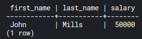 INSERT INTO employees(first_name, last_name, salary) VALUES('Ibrahim', 'Saeid', 15000);Code language: SQL (Structured Query Language) (sql)
