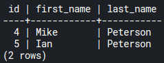 AND e1.last_name = e2.last_name;Code language: SQL (Structured Query Language) (sql)