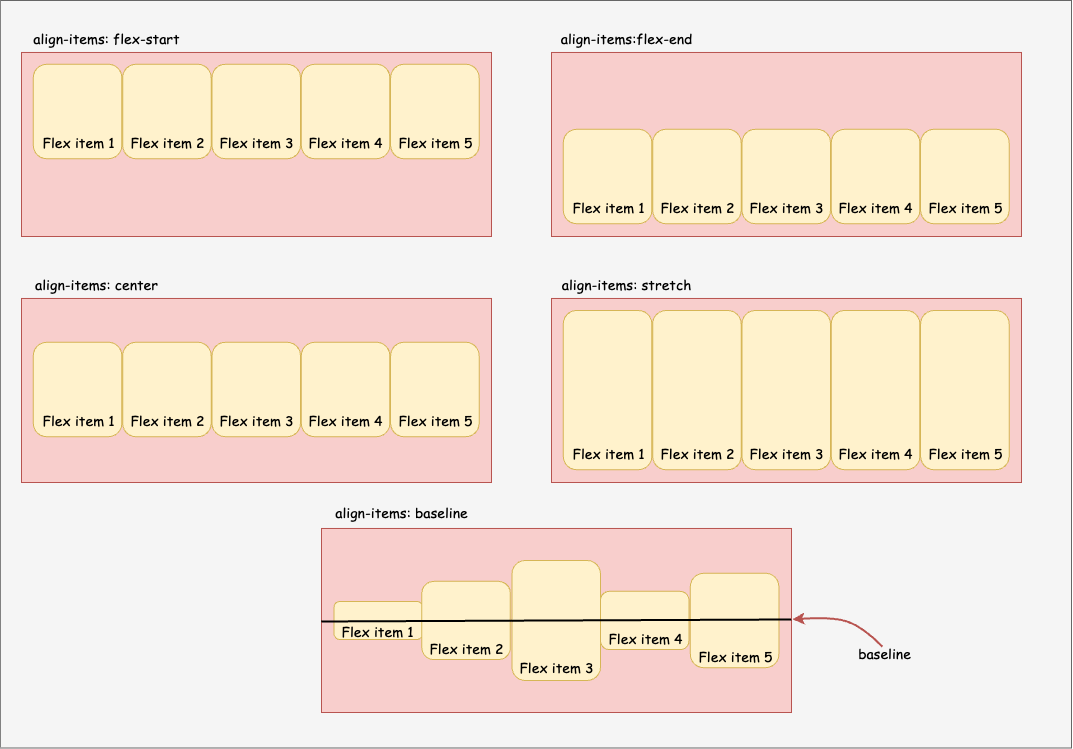 align-items: stretch | flex-start | flex-end | center | baseline;