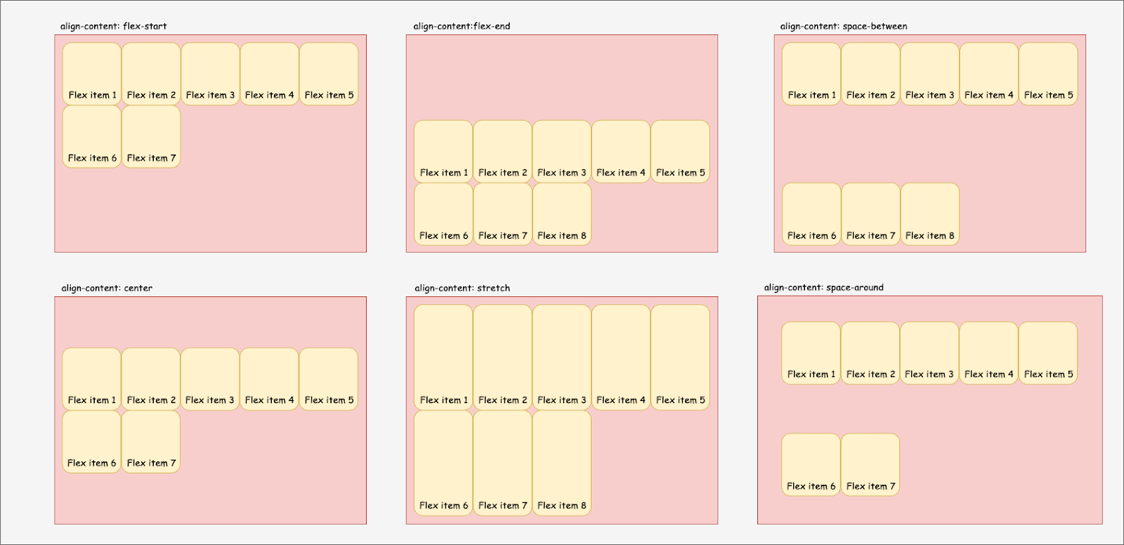 align-content: stretch | flex-start | flex-end | center | space-between | space-around;