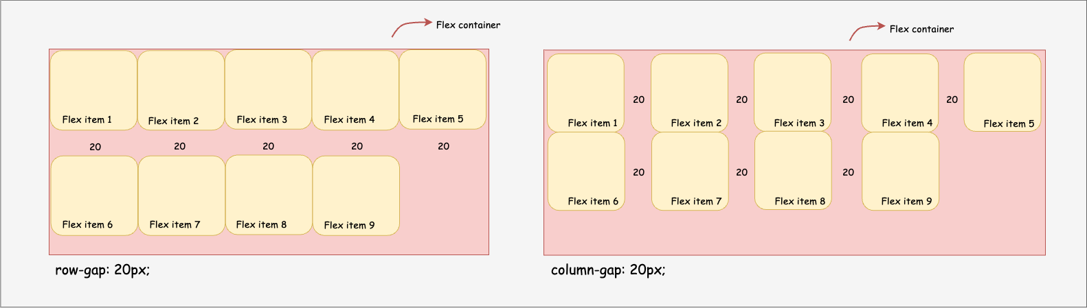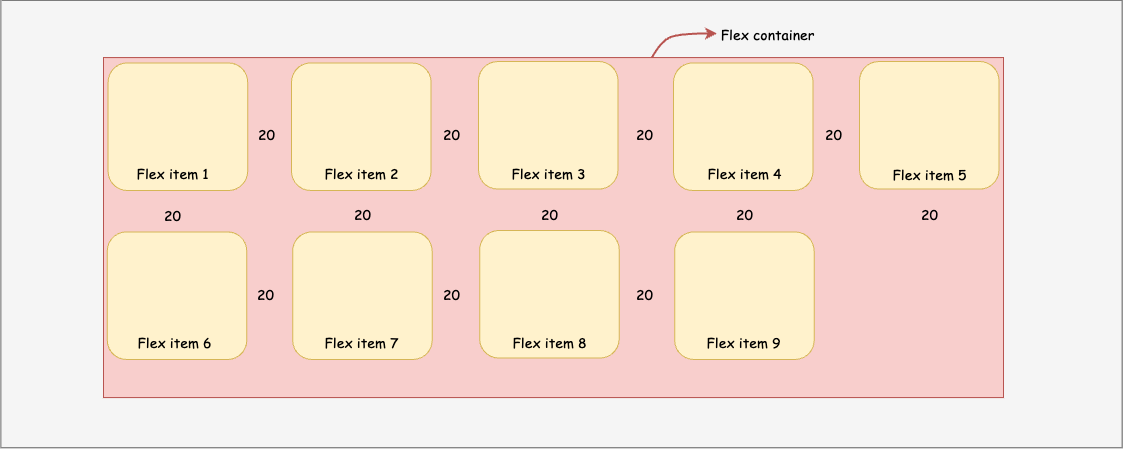At this point, one major aspect left for your flex container styling is adding gaps to your flex items. You will want to be able to add equal gaps between flex items either horizontally, vertically, or on both sides.
