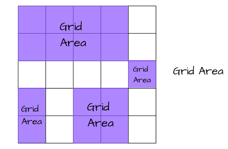 Grid area: A rectangular area on the grid made up of one or more grid cells. Grid areas are created when a grid item spans over one-to-many grid tracks. They must be rectangular; creating a T- or L-shaped grid area is impossible.