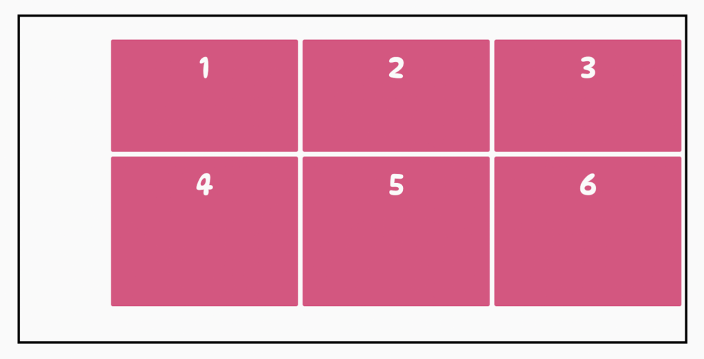 From the image above, the first grid item now begins at column line 2, while the other grid items are pushed over, wrapping onto new rows or creating empty spaces on the grid.