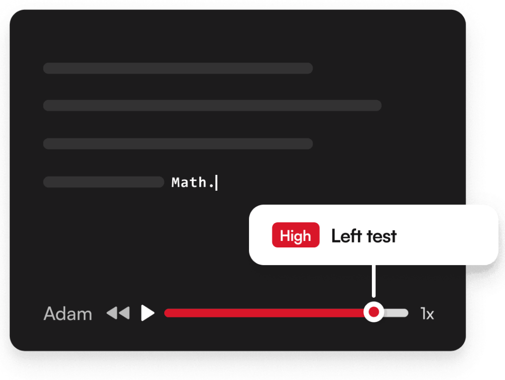 Simply put, we record candidate activity during a coding exercise. You can watch how your candidate built their algorithm, when they left the environment, when and what they pasted from external sources, and what happened when they ran their code. Explore a demo version of code playback.