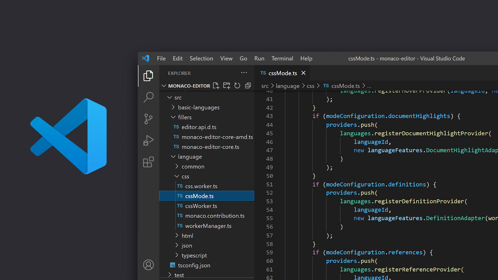 To work around this, we actually forked the monaco-editor package to make it easier to integrate with `vscode-textmate`, the very package VSCode uses to interpret TextMate packages.